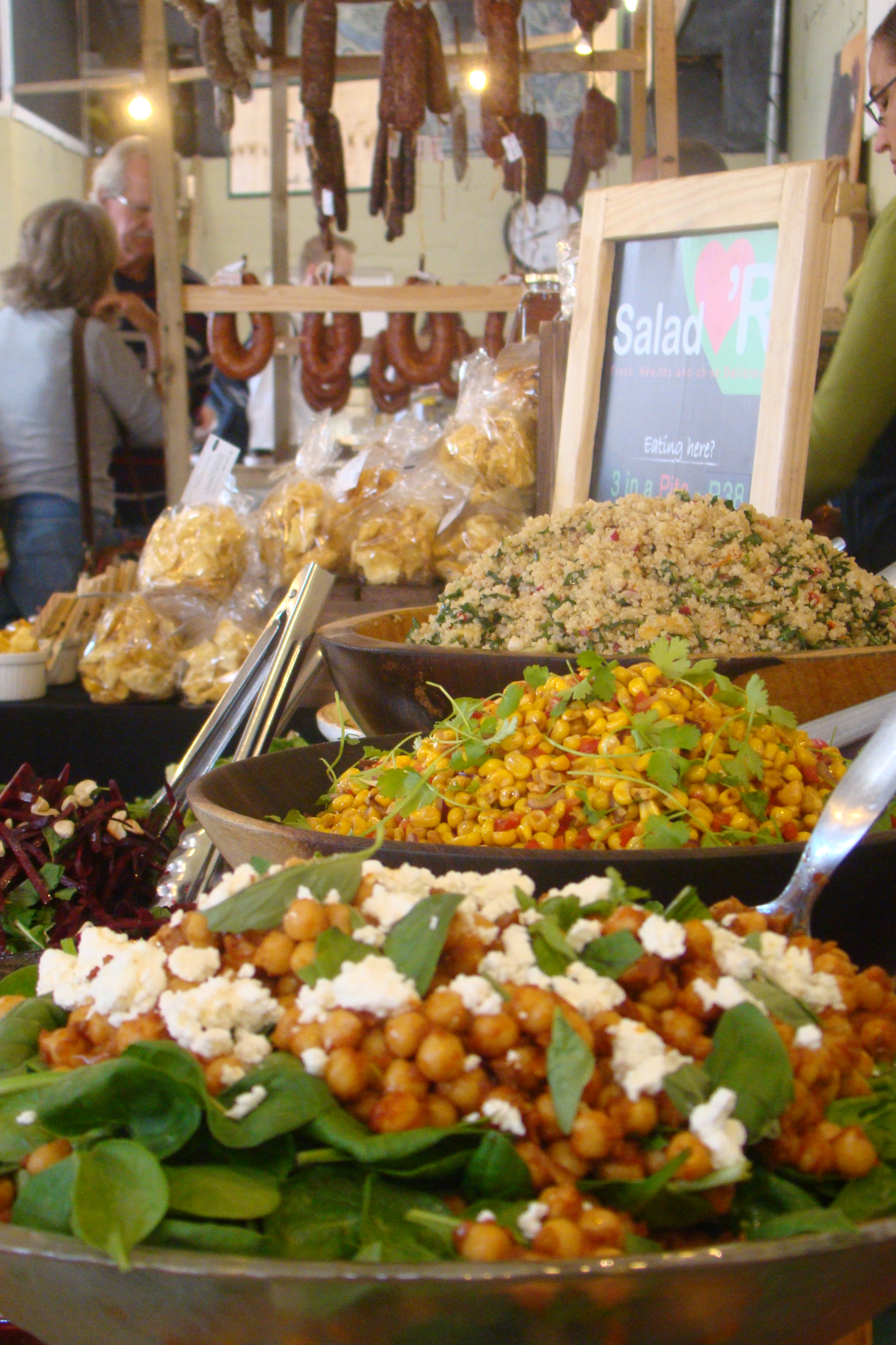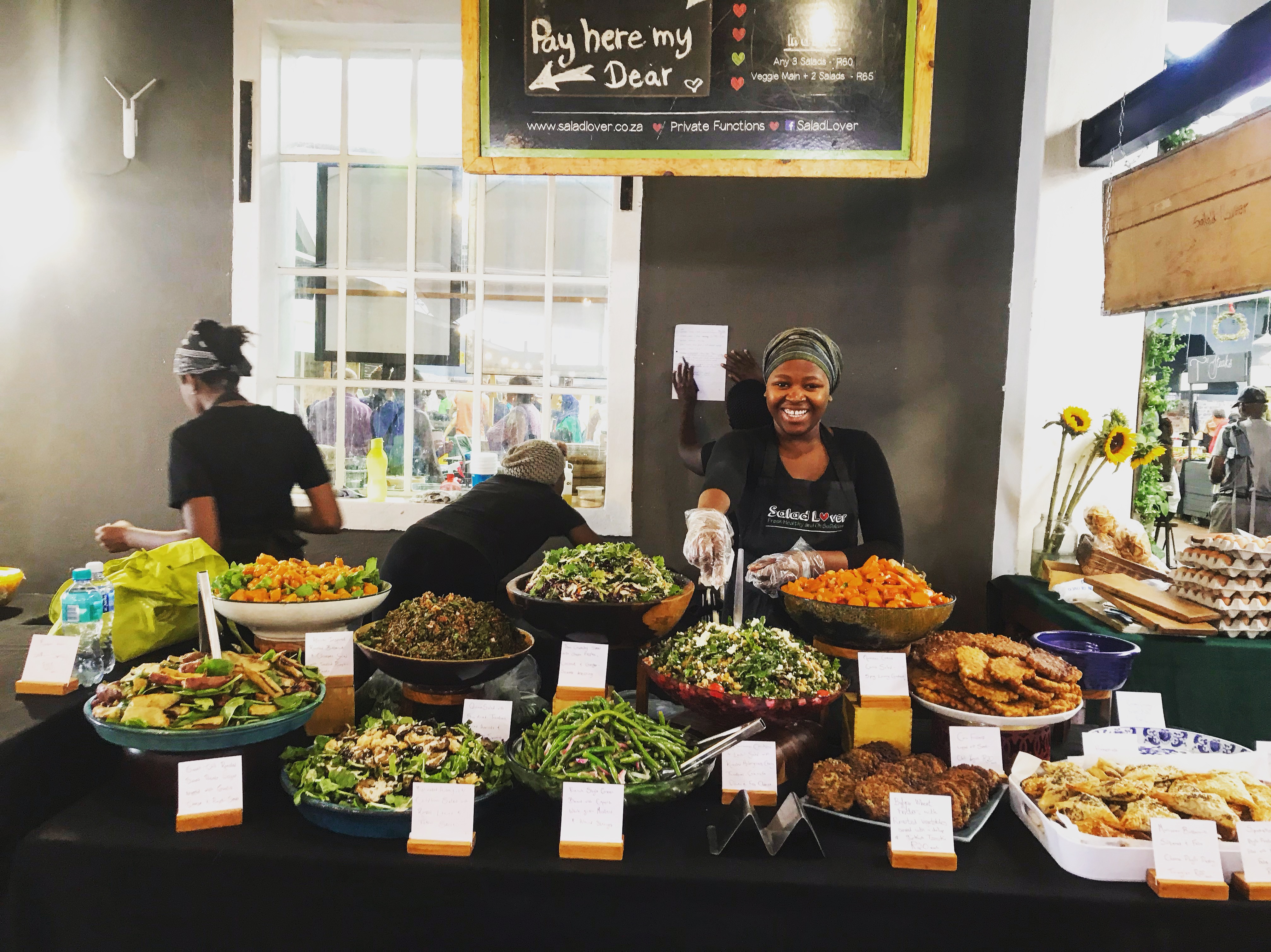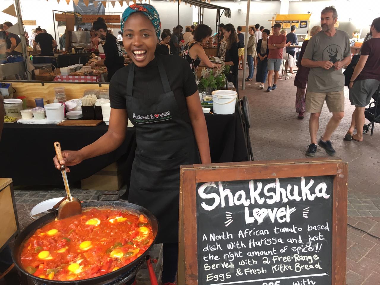 Since day one, we have always focussed on our market presence. Our passion for these wonderful weekly adventures is very much a part of who we are and what we stand for: fresh produce, local suppliers, exciting food and face-to-face interaction with our wonderful customers. The salads we have at the markets vary week to week and seasonally, but we always have our crowd-pleasing falafel, hummus, and fritters at every market. We also serve our now well-known and much loved shakshuka at the Neighbourgoods Market. We trade on Saturdays at a number of markets throughout Cape Town. Currently we are at Neighbourgoods Market and Earth Fair Food Market