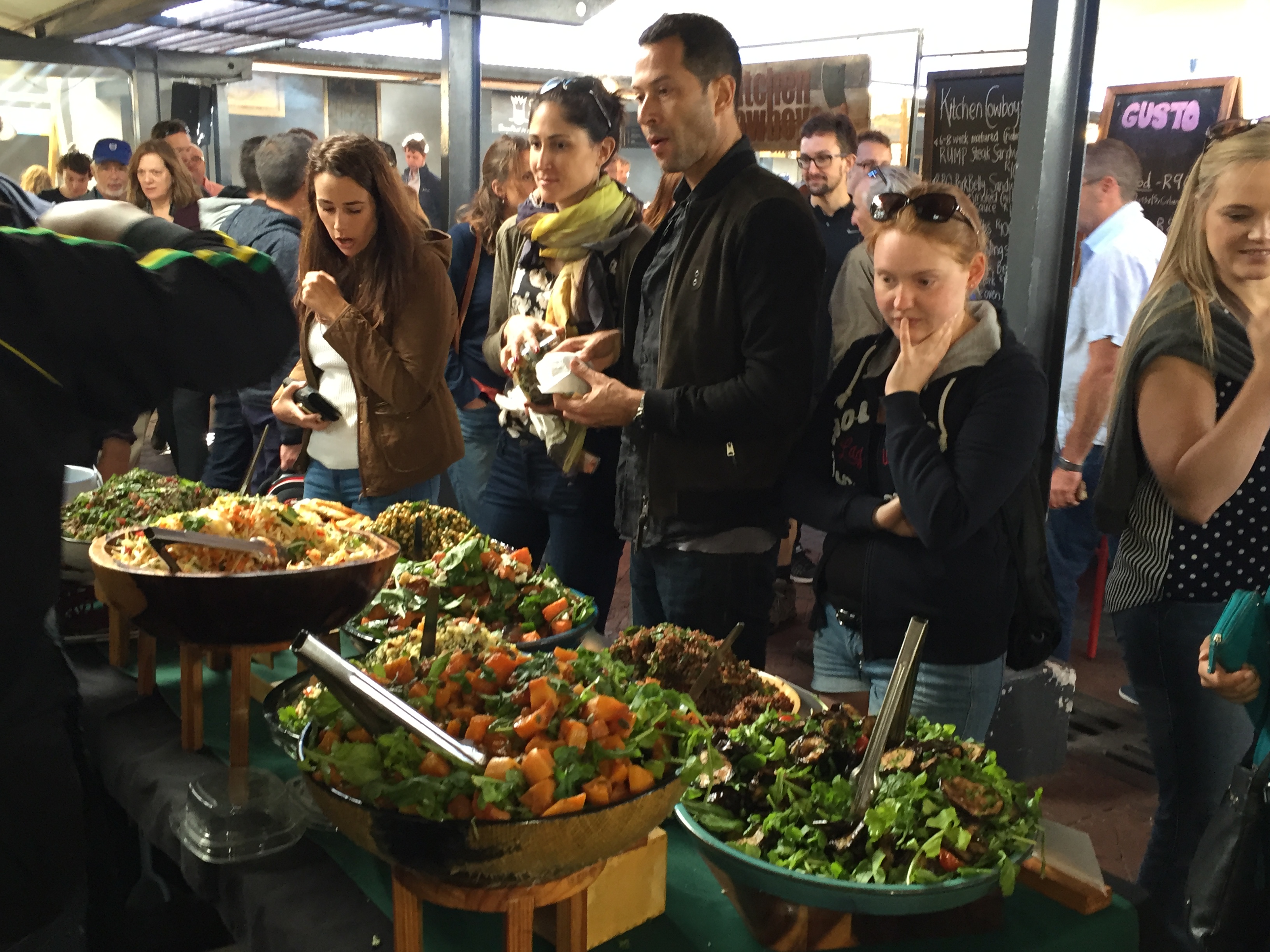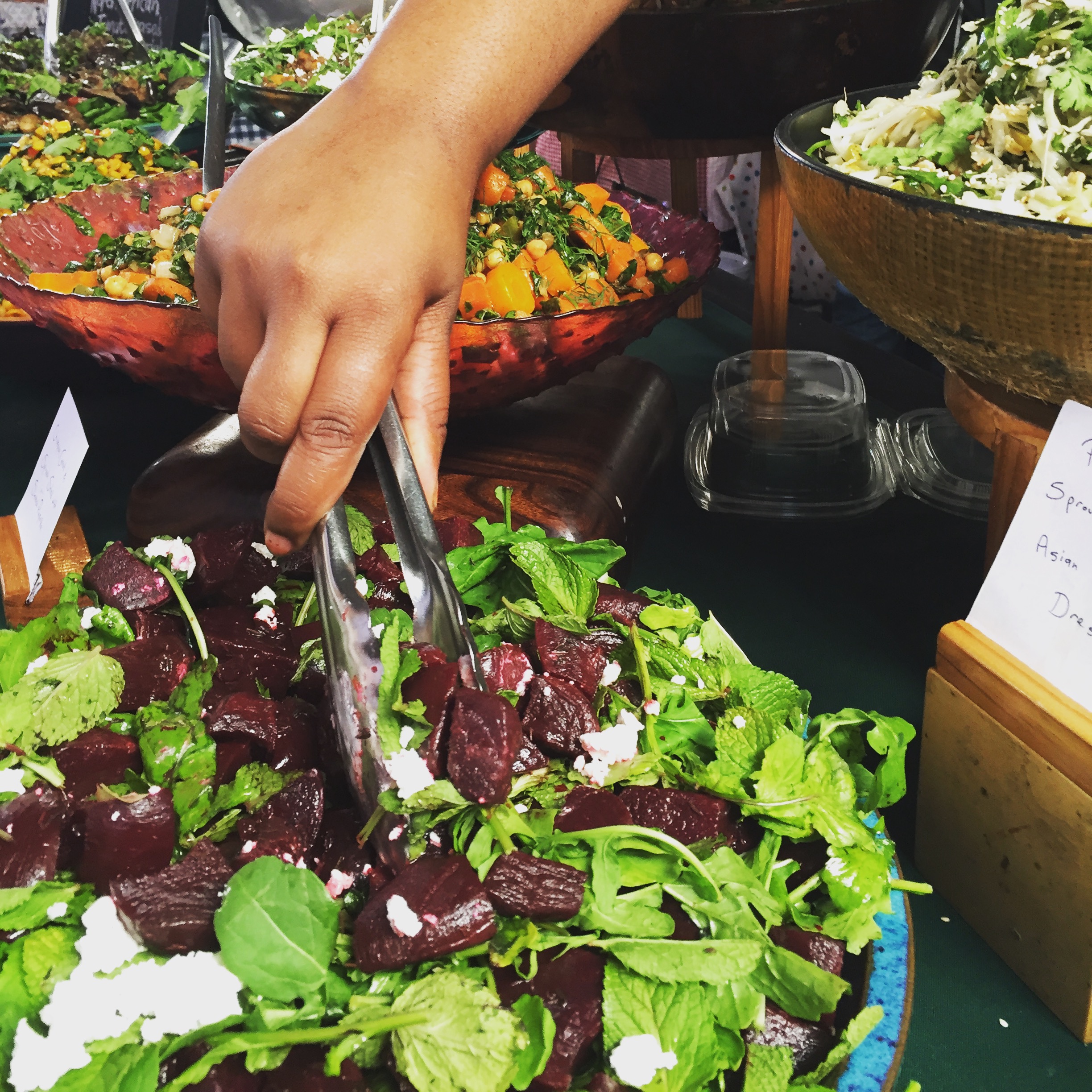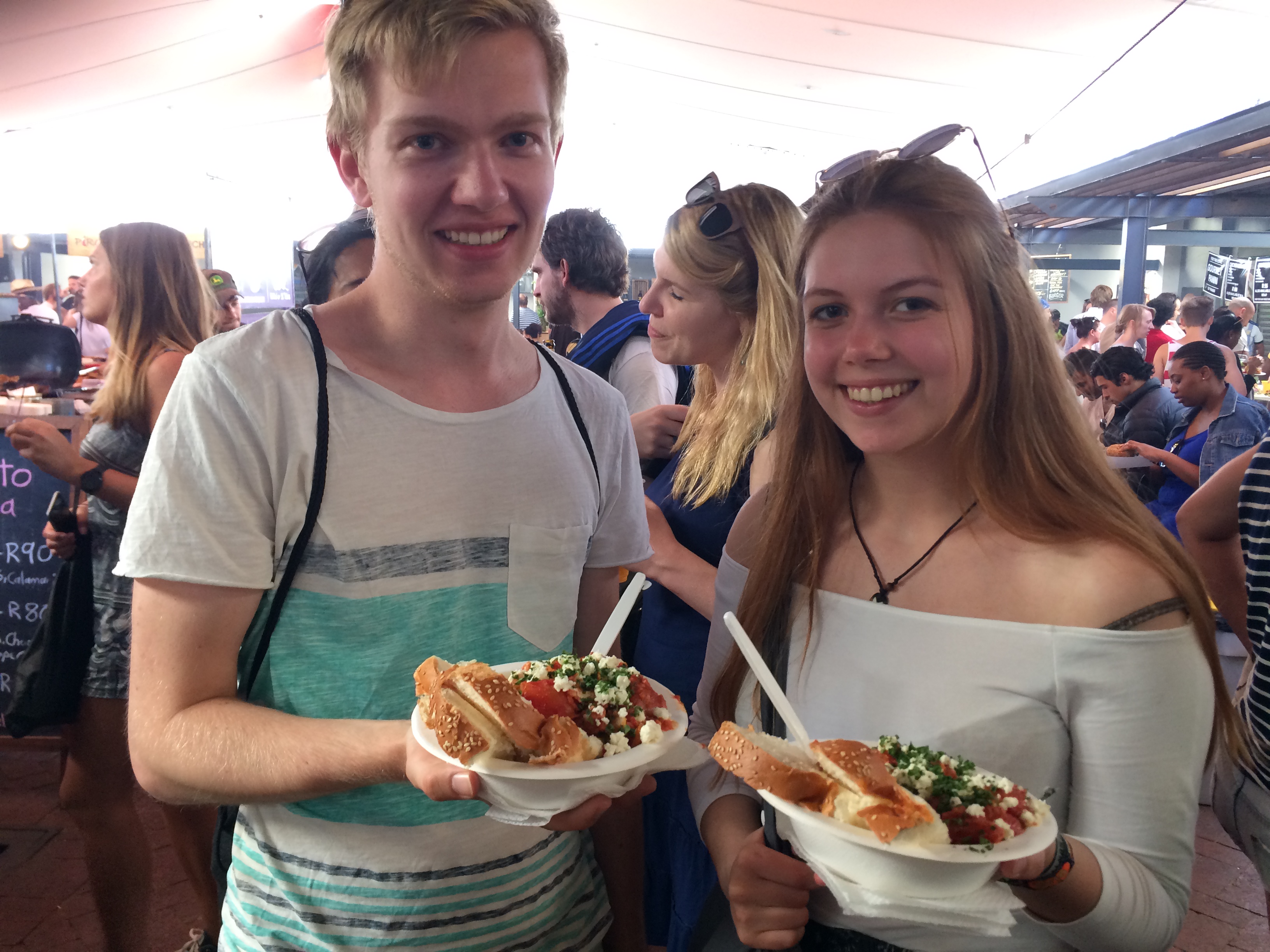Since day one, we have always focussed on our market presence. Our passion for these wonderful weekly adventures is very much a part of who we are and what we stand for: fresh produce, local suppliers, exciting food and face-to-face interaction with our wonderful customers. The salads we have at the markets vary week to week and seasonally, but we always have our crowd-pleasing falafel, hummus, and fritters at every market. We also serve our now well-known and much loved shakshuka at the Neighbourgoods Market. We trade on Saturdays at a number of markets throughout Cape Town. Currently we are at Neighbourgoods Market and Earth Fair Food Market